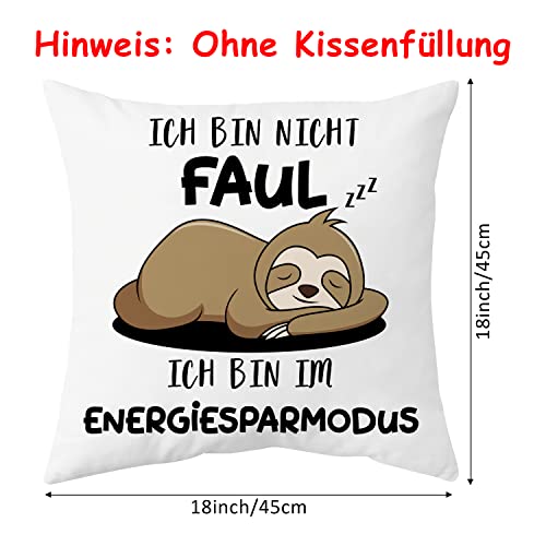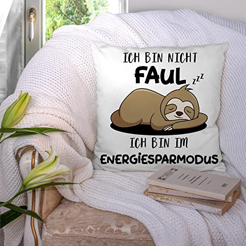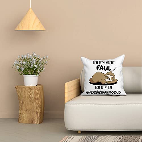 Faultier geschenk: Das Deko-Kissen für alle Schnarchnasen, Faulenzer und Langschläfer: Kissenhülle mit schlafendem Faultier Aufdruck und :““Ich bin nicht faul ICH BIN IM ENERGIESPARMODUS“ lustiger Text. Diese kissenbezug ist witzige faultier geschenke, für frauen und männer.
