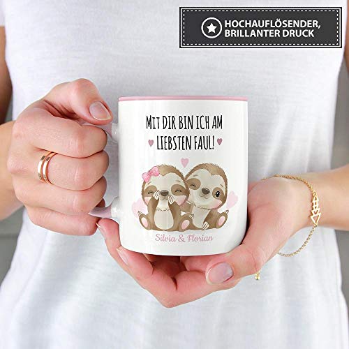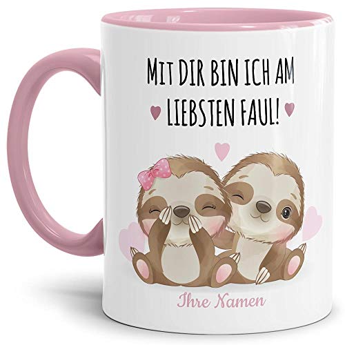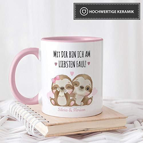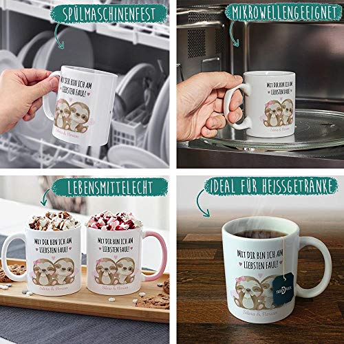 Bedruckter Kaffeebecher liebevoll gestaltet – eine hochwertige Keramiktasse bedruckt mit zwei süßen Faultieren und passendem Spruch – für den liebsten Schatz